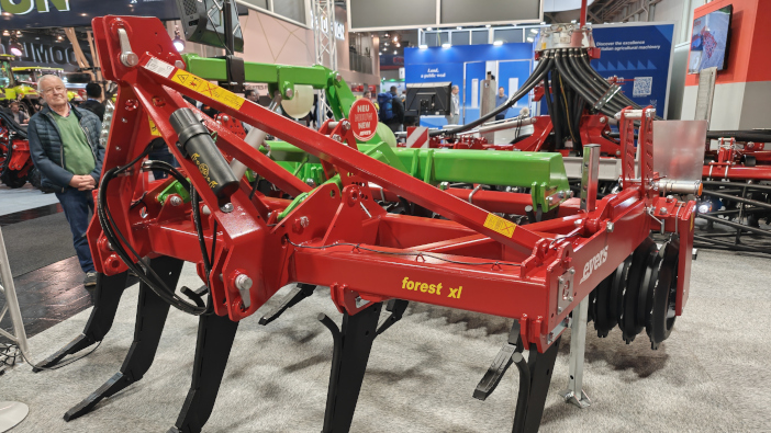 A novel cultivation solution was highlighted on the Evers stand. Its 3m subsoiler is split across two bars, with a total of nine legs. The second bar is independently, hydraulically controlled from the first, enabling the depth of the final four tines to be adjusted separately from the front.