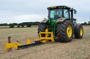 The Mole Drainer is a single-leg unit, said to combine trailed and mounted designs, suitable for well-ballasted tractors from 200hp. It has a long, narrow beam with a 75mm mole bullet and 100mm ceramic expander running parallel with it.
