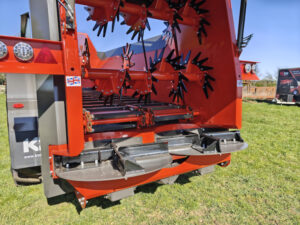 “The only difference to the spreading system on the larger units is that we’ve reduced the overall height by removing the vertical combs that are required on the bigger machines because of the size,” says Ashley.