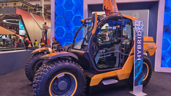 Another prototype on the New Holland Agritechnica stand was its hybrid telehandler, said to be an industry first combination of electric and natural gas. The unit is built around a standard New Holland chassis at present, offering lift heights of between 7-9m and maximum capacities up to 4,200kg.
