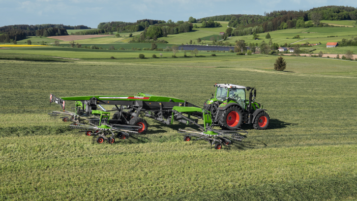 Fendt has released the new generation model of its largest four-rotor rake, the Former 14055 PRO. This rake model is designed for use on large farms and has a working width of 10.5 to 13.8m. The new generation model includes features such as new sensors, a more functional design, and an optional LED working light package.