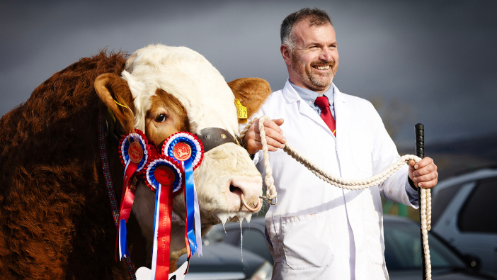 Leading the sale at 28,000 gns, and setting a new record top price for a Simmental bull from Northern Ireland, was the Banhill Farm Masterpiece from Alan Wilson, Rathfriland, Co Down. In the pre-sale show, the bull won the Intermediate section before going on to lift the Overall Supreme title. Commenting on his champion, Colin Fordyce said: “This is a typical and modern Simmental bull with a lot of class. He had tremendous length with plenty of shape but is not extreme. Really good across the plates, he had good legs, walked well, and really showed himself. A quality bull and a worthy champion from within a strong show of Simmentals.”
