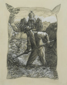 The drawings will be offered in three lots. The first includes 11 scenes of arable farming, estimated to make between £1,500 and £2,500. The second has four images of British farmworkers, expected to make £600-£800. The third lot has seven drawings related to dairying and is expected to achieve between £1,000 and £1,500.