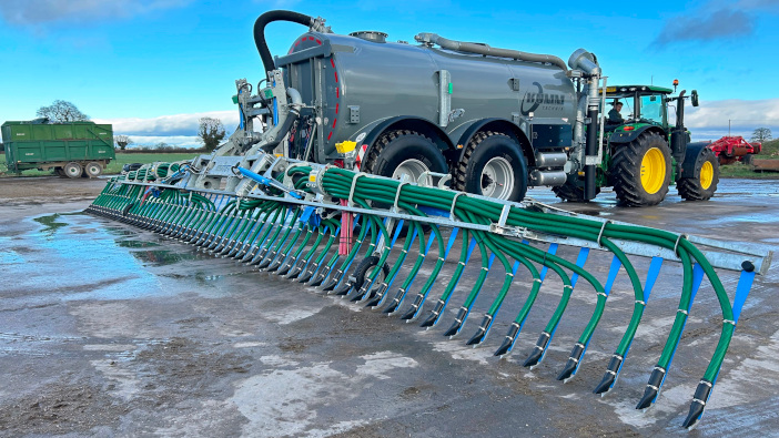 “We have the 20.5m³ KTR tanker available for demonstration, fitted with a 15m Bomech Farmer trailing shoe applicator. This tanker maintains an accurate application rate even when applying lower volumes thanks to the rotary lobe pump and 8” flow-meter working with a three-way valve which directs the correct volume to the boom and sends the excess back to the tank.”
