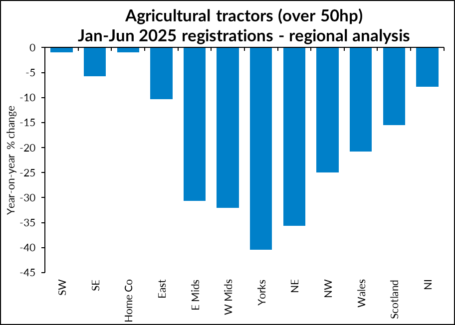 Following the announcement that June registrations saw a smaller drop year-on-year than previous months in 2025, the Agricultural Engineers Association (AEA) has released data by power and region for the first half of the year.