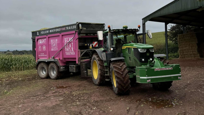 Devon farming and contracting business BG Pearce has commissioned a one-off, pink Ktwo trailer with a QR code and various slogans to raise money for Cancer Research UK.