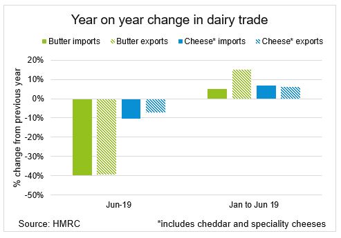 The high level of imports that occurred before the original Brexit date boosted stocks, and may have reduced import demand in the following months. High domestic milk production, and the resulting increase in butter and cheese production, will also have dampened the need for imports.